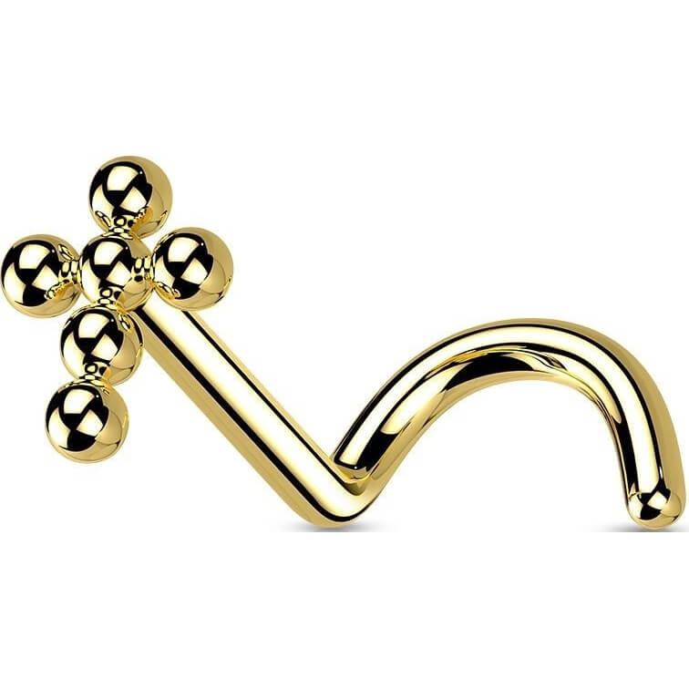 The Nose Screw features a unique 6 balls cross top, available in an array of captivating colors such as gold, black, rose gold, and silver. Its 6 mm length and 0.8 mm to 1 mm thickness make it the perfect fit for your nose piercing.