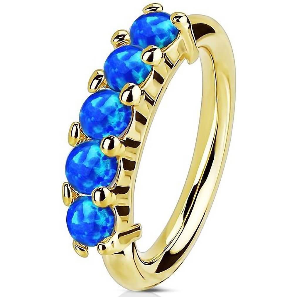 Crafted with high-quality gold material, this piece not only ensures durability but also exudes an elegant and luxurious appeal. The highlight of this piercing is the mesmerizing Opalite stone, available in three captivating color variations: Opal White, Opal Blue, and a combination of Yellow Gold with Opal Blue.