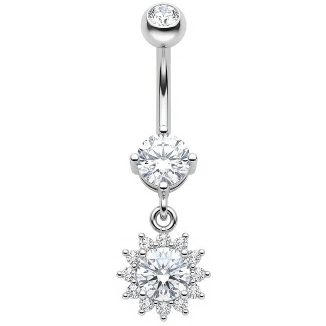 Get ready to shine this summer! This stunning belly button ring features a dazzling crystal flower dangle that catches the light with every move. Crafted from high-quality 316L Surgical Steel, it is the perfect sexy eye-catcher for your navel. Whether you are hitting the beach or a festival, this sparkling beauty adds the ultimate glam to your look.